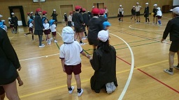 幼小でペアになり、2チームに分かれてゲームです。