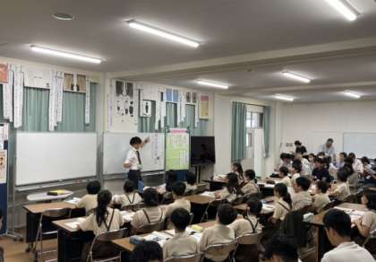 大阪市内外からたくさんの教員が参加し、5年生国語で、授業研究会を行いました。