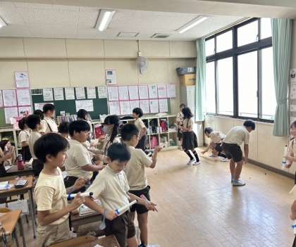 とじこめた空気を押すとどうなるか、空気でっぽうを使って実験しました。押すと重く感じたり、玉がよく飛ぶ時の様子を観察したりしました。