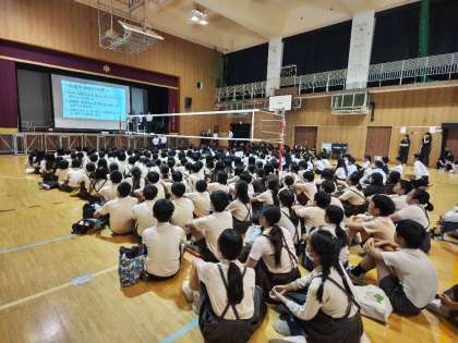 北稜中学校生徒会の皆さんから中学校生活や部活動について説明を聞きました。その後、すべての部活動を見学しました。中学校に向けての準備を進めています。