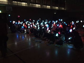 果実袋に、それぞれ思い思いの笑顔を描きました。描いた笑顔の袋にLEDを入れて点灯、子どもたちから歓声があがりました。