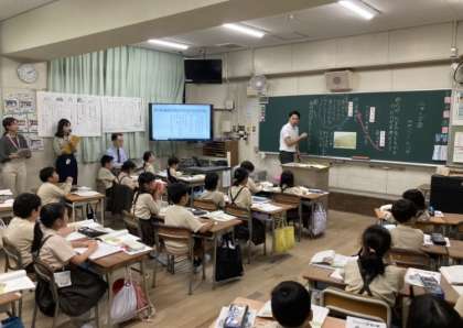 大学や大阪市総合教育センターから講師の先生に来校いただき、2年生が国語「ニャーゴ」で研究授業を行いました。登場人物の心情が変化した理由について考えていきました。