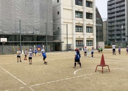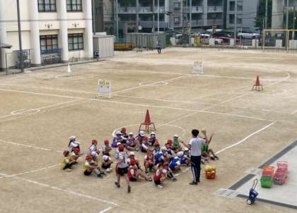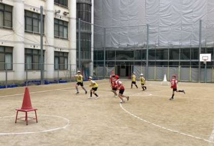 的ヒットゲームをしました。チームごとに目標や役割を確認して、楽しみながら体を動かしました。