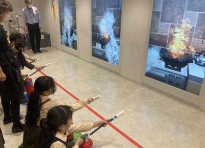 あべのタスカルに行き、消火器体験や煙体験を行いました。いざという時の行動や準備しておくべきことを学びました。
