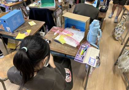 作品展に向けて、作品作りをしています。好きな物語を立体的に表現するために色々な道具を使ってがんばっています。