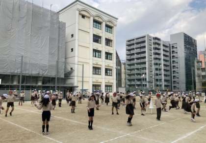 休み時間を使い、曲に合わせて前跳びやあや跳び、交差跳び、二重跳びをして体を動かしました。