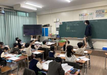 算数の学習では、びんに入っている水のかさを、分数で表しました。
