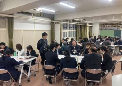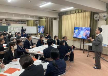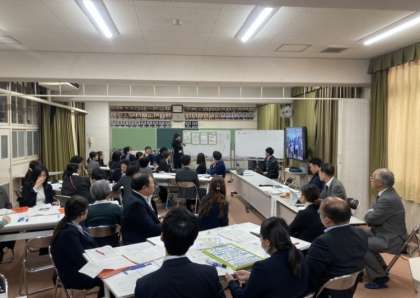 授業後には、子どもたちの姿から授業の内容について振り返りを行いました。スクールアドバイザーからもたくさんご指導いただきました。明日からの授業につなげていきます。
