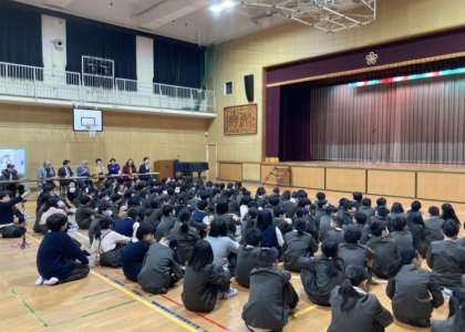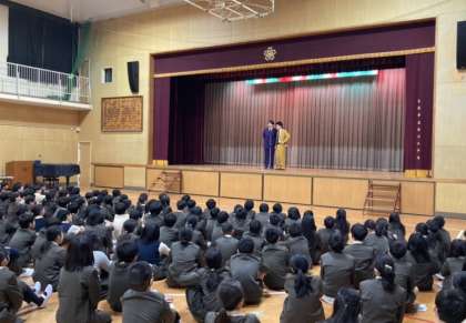 これまでコンビでネタの打ち合わせや練習を行ってきました。今日は、芸人のみなさまに来校いただき、子どもたちが漫才を披露しました。漫才を通して、子どもたちの新たなつながりがうまれ、よさを知ることができました。芸人の漫才を生でみることもでき、本物にふれるとても有意義な取り組みとなりました。