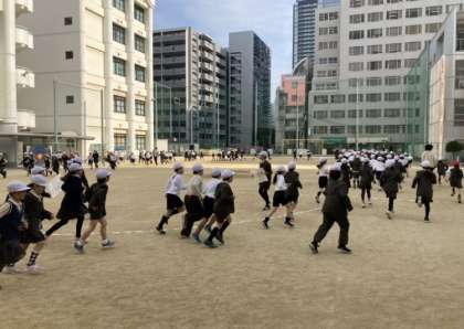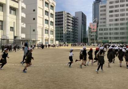 寒さが厳しい中ですが、休み時間に運動場でかけあしを行い、体力向上に取り組んでいます。2月には、堀川マラソンがあります。