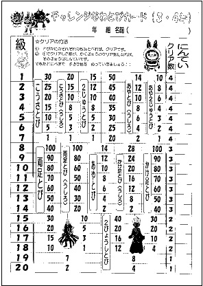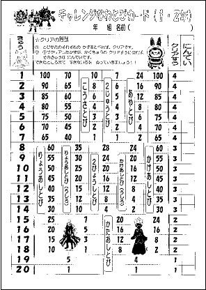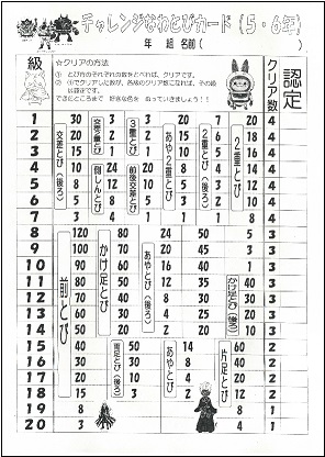 →詳しくは、ここをクリックしてください。「チャレンジなわとびカード(低・中・高学年用)」がご覧いただけます。