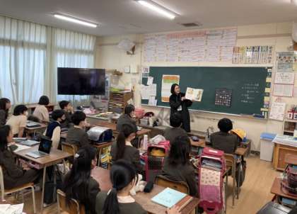 PTAOBの方を中心に、朝に子どもたちに読み聞かせをしています。短い時間ですが、子どもたちは集中してきき、物語に入りこんでいます。