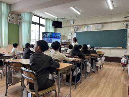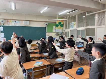 初めての外国語活動の授業を受けました。CーNETの先生とクイズやジャンケンをしながら楽しく活動しました。
