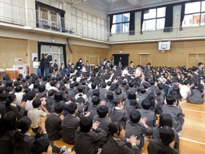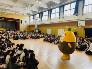 本日の2時間目に、入学を祝う会を行いました。堀川小学校の妖精「ほりかわん」もお祝いに来てくれました。