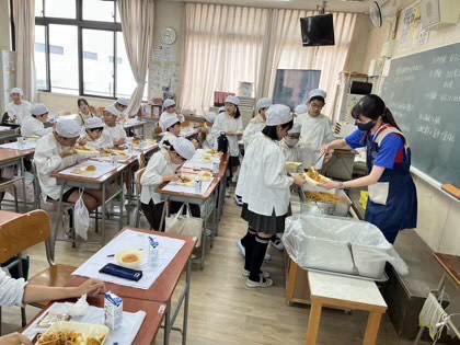6年生の教室をのぞくと、おかわりの列ができていました。