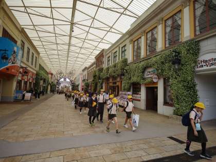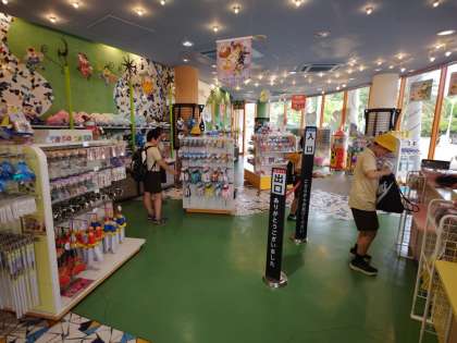 宿舎のお土産コーナーで、計算しながら選んでいます。楽しかったスペイン村ともお別れです。