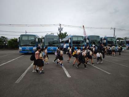 予定通り、現地を出発しました。学校到着予定時刻については、交通事情をみて、随時お知らせします。