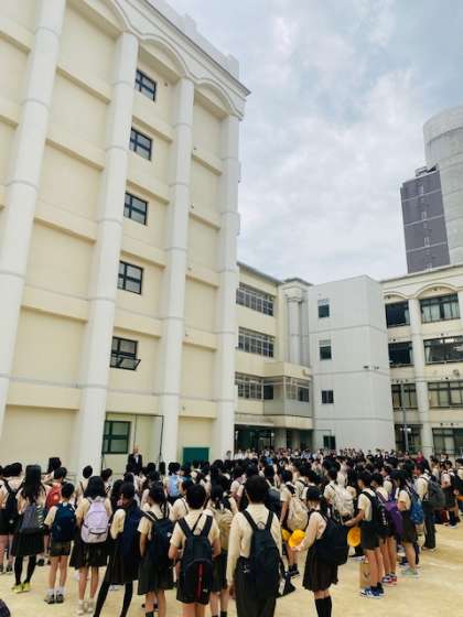本日、無事に修学旅行から戻り、運動場で帰校式を行いました。今回の修学旅行は、天候にも恵まれ、仲間とともにたくさんの思い出をつくることができました。心に残る、素晴らしい修学旅行でした。これからの学校生活にも、この経験を活かしていって欲しいと思います。