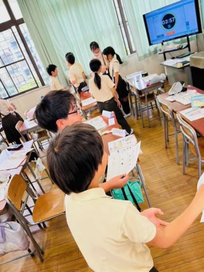 誕生日に欲しいものをたずねる言い方を知り、みんなで実際に交流しました。