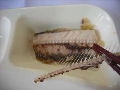 *魚の腹の方には、小さい骨が残っているので気をつけて食べましょう。