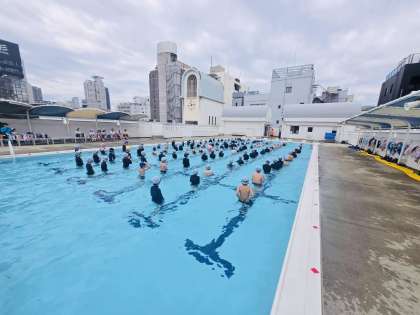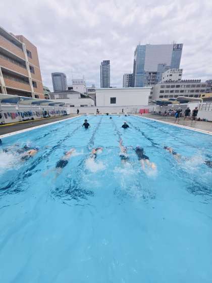 水なれ、けのび、バタ足、クロールの復習をして、最後に25mを泳ぎました。