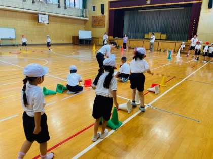 1年3組では、体育科の時間に「とびあそび」の学習を行いました。