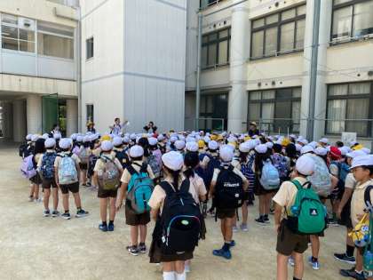 暑い中ではありましたが、子どもたちは元気いっぱいに活動し、無事に帰ってくることができました。 会場では多くの国の文化や雰囲気に触れることができ、子どもたちにとって貴重な体験となりました。帰校時には「楽しかった!」「また行きたい!」という声がたくさん聞かれ、満足そうな表情が印象的でした。万博ならではのスケールの大きさや、多様な展示・体験を通して、子どもたちの世界が広がる一日となりました。