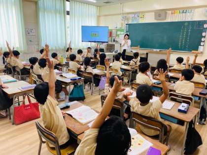 1年2組では、3時間目の国語の学習で、擬声語や擬態語を使って「ことばあそびうた」を作りました。