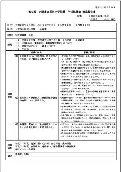 第3回「堀川小学校学校協議会実施報告書」を掲載しました