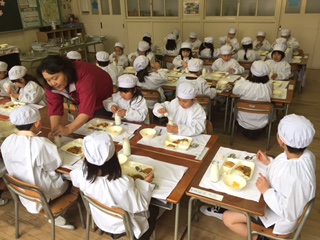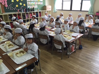 今日から給食がスタートしました。1年生にとっては、はじめての給食です。