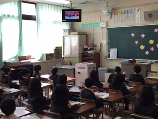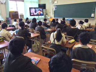 市の施策で高学年の教室から大型テレビが整い、画面が大きくなって以前より見やすくなっています。