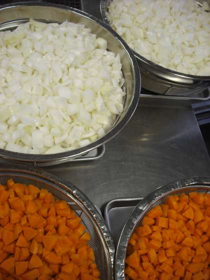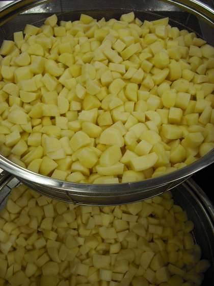 今日の給食は、「肉じゃが、もやしのゆずの香和え、枝豆、ごはん、牛乳」でした。けずりぶしでだしを取った肉じゃがは、児童が好きな献立の一つです。