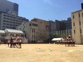 6年生の子どもたち全員で、チアリーディングに練習に取り組んでいます。
