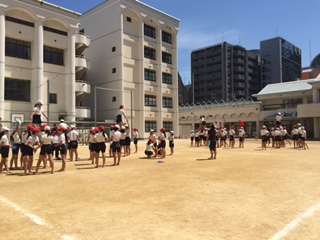 6年団体演技「チア☆ドリーム 堀川」の練習風景です