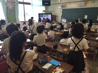 応援団の子どもたちが赤・白の応援の拍子と型を紹介してくれました。