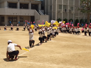 旗を持ってのダンスや隊形移動など、見どこをがたくさんあります。旗の動きがそろってとてもきれいです。