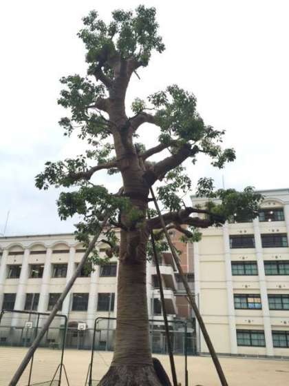 梅雨の雨で、残念ながら子どもたちは運動場で遊べませんが、3月末に移植した「クスピー」は、元気に葉をつけだしました。