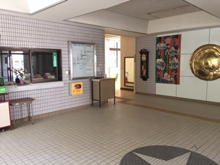 堀川小学校にも、玄関ホールの管理作業員室の壁面にAEDが設置されています。