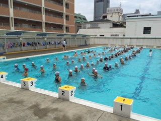 プール水泳指導が本格的に始まりました。まずは、今年度の泳力の記録をとり、夏休み明けの9月には、どれだけ泳力が伸びたかをみます。