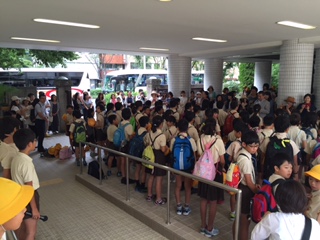 5年生が、自然教室(びわ湖青少年の家)に出発しました。