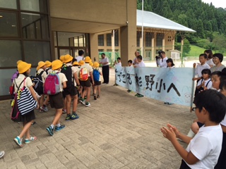 11時過ぎに杉野小学校に到着、大歓迎で迎えていただきました。