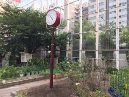 堀川幼稚園のクスピーの小山にあった小鳥時計が、小学校南側のバラ園に復活しました。これからは、運動場や花壇にいる子どもたちにやさしく時間を教えてくれます。
