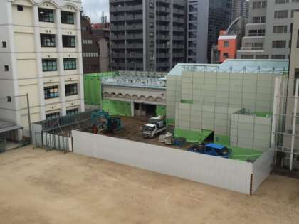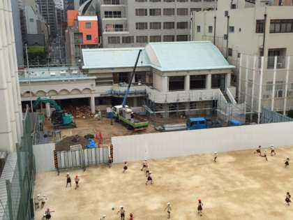 運動場に鋼板塀ができて10日、園舎の解体工事がすすんでいます。