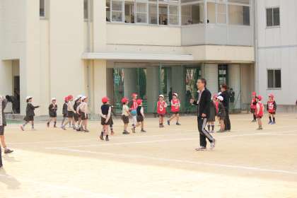 15分休みや昼休みに運動場で北区ドッジボール大会に向けた練習を行っています。参加する児童はもちろん、参加できない児童も練習相手として練習に取り組んでいます。