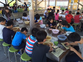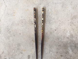 若狭塗り箸作りが始まりました。漆をヤスリで削って貝殻や卵の殻の模様を出していきます。
