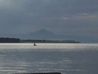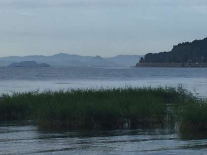 びわ湖青少年の家からの朝の風景です。東に伊吹山、西に近江富士も見えます。