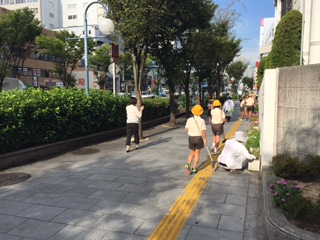 堀川女性会・PTA・地域の方々と一緒に5年生の子どもたちが、学校前の歩道の清掃を行いました。