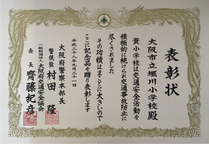 北区民センターで開催された平成28年度「北区交通安全大会」で、本校が表彰されました。