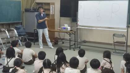 今年度も昨年度に引き続き、マット先生に来ていただき3・4年生は英語活動を行います。マット先生の巧みな指導のもと楽しそうに英語と触れ合っています。2学期からモジュールタイムで全学年、英語活動に取り組んでいます。
