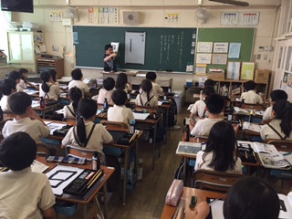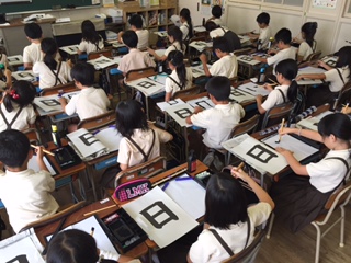 子どもたちにとっては、準備や後片付けは大変ですが、しっかりお手本を見て心落ち着かせて筆を運ぶ真剣勝負の時間です。